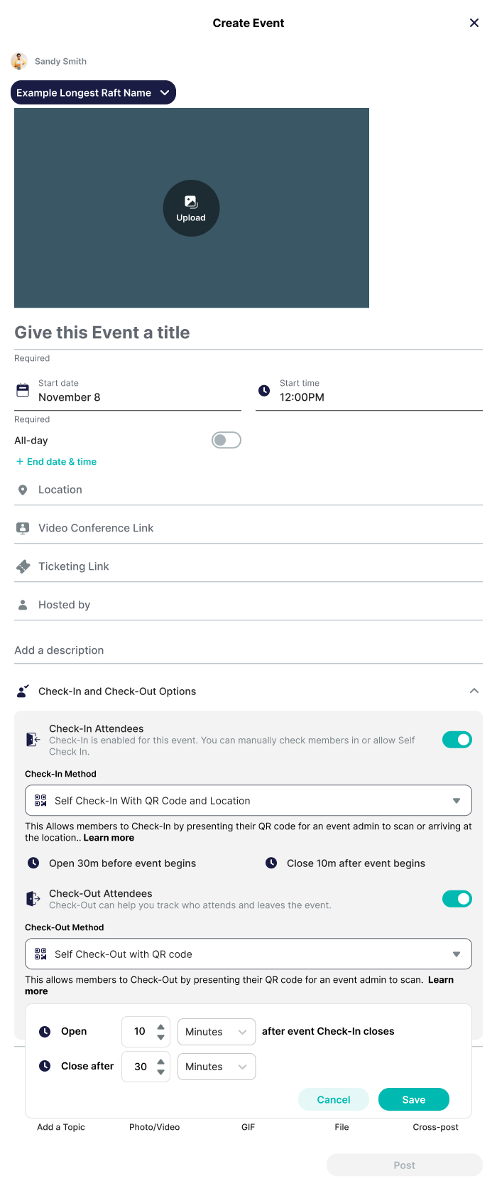 Note: Adjusting check-out timing ensures you can control attendance windows even after the event ends.